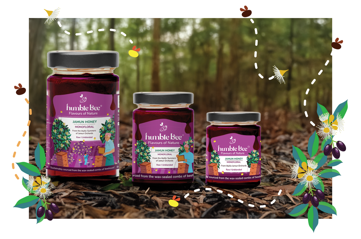 Crafted by bees in idyllic summer orchards, Raw Monofloral Jamun Honey is a fusion of earthiness, woody sweetness, bitterness, and intrigue. This dark-amber floral honey, with a subtly tart aftertaste, is diabetic-friendly and nature's healer.