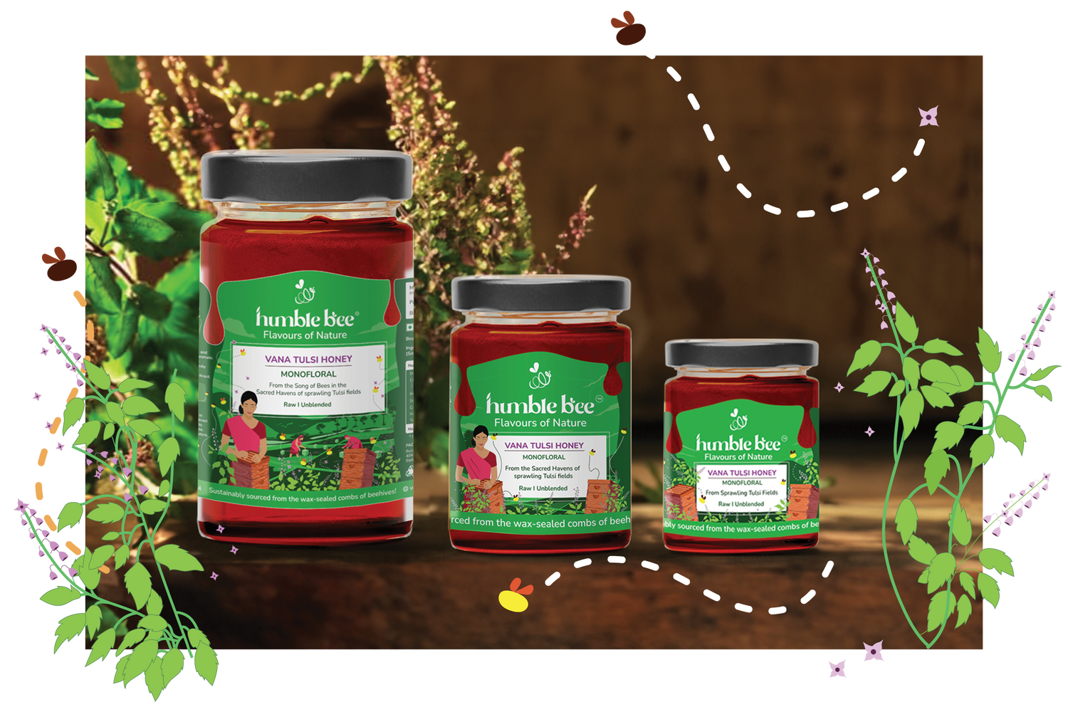 Savor the divine Vana Tulsi Honey, expertly crafted by bees in large aromatic Vana Tulsi plantations. This deep amber honey carries the essence of Tulsi, with warm, herbal undertones. Elevate well-being with its natural immune-boosting and antioxidant properties.